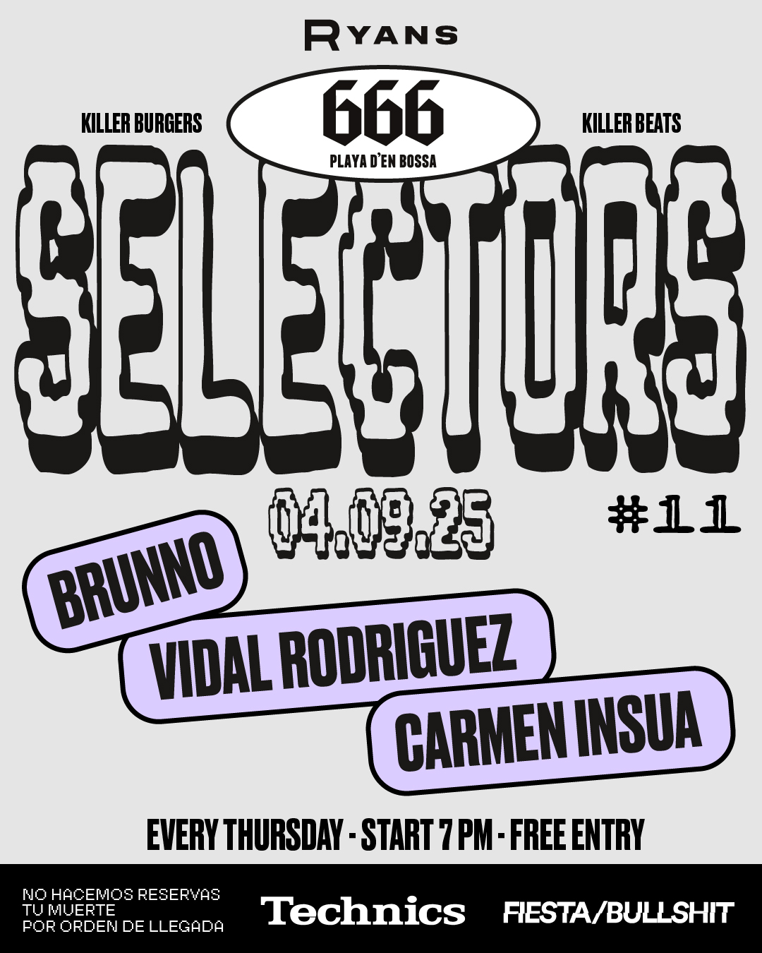 El ciclo Selectors que cada jueves convierte el Ryans 666 de Playa d’en Bossa en punto de encuentro para los amantes de la música en vinilo, regresa este 4 de septiembre con un cartel formado por Brunno, Vidal Rodriguez y Carmen Insua.