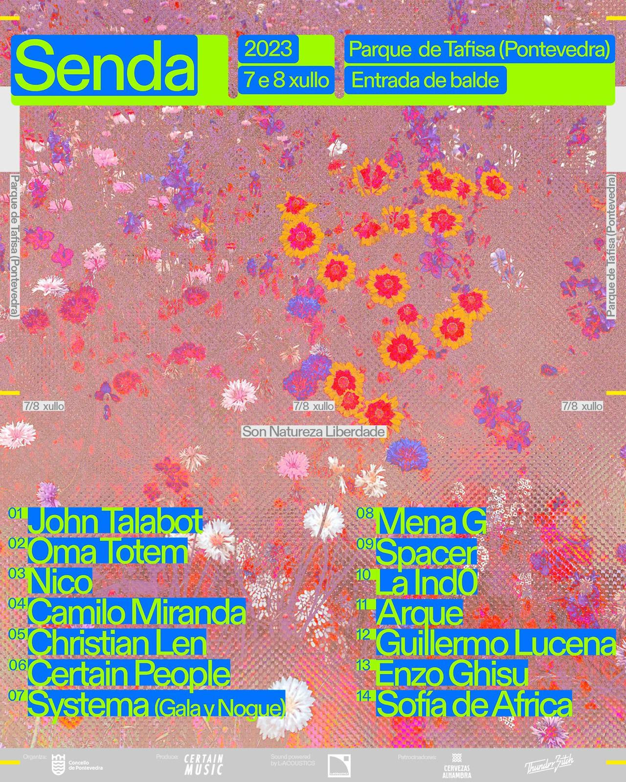 El Festival pontevedrés SENDA prosigue su camino (iniciado en 2022 como herencia del Festival Flop), transitando nuevos territorios. La principal novedad de este año es nuestro nuevo emplazamiento: el Parque Tafisa, una zona verde de expansión urbana junto al Río Lérez y más conectada con el centro de la ciudad. El que se mantiene intacto es el espíritu de SENDA: un festival boutique con una cuidada selección de artistas (casi todos inéditos en Galicia), con propuestas que oscilan entre el baile hedonista y los sonidos de vanguardia.