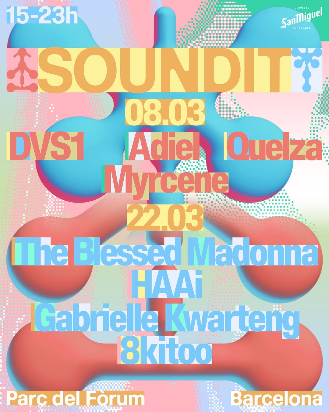 El arranque oficial de temporada será el 8 de marzo con la vuelta al Parc del Fòrum y un cartel encabezado por DVS1, el maestro estadounidense que ha revolucionado la escena electrónica con una visión de la cultura de club adelantada a su tiempo. Con él, tres artistas que ayudarán a rubricar el primer evento del año en este recinto: Adiel, DJ y productora italiana conocida por sus sets en los que mezcla techno con ritmos más bailables como buena heredera de la tradición electrónica del país transalpino, Quelza, artista francés afincado en Berlín cuyo universo sonoro orbita alrededor del techno con influencias IDM y Myrcene, talento del underground barcelonés que traerá a la pista una buena dosis de electrónica fresca e irreverente. Una combinación infalible para inaugurar la temporada de SOUNDIT con el espíritu festivo al máximo.