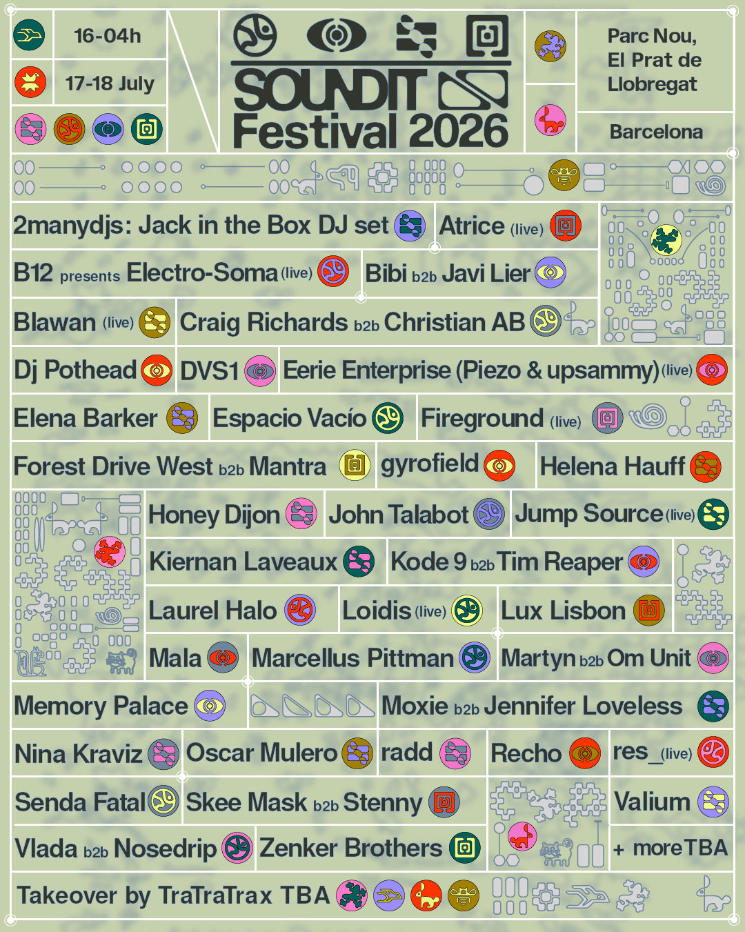 El primer avance de cartel, con 32 artistas que ofrecerán directos, b2b y dj sets, es una declaración de intenciones liderada por auténticos pesos pesados de la electrónica mundial: la autoridad house de Honey Dijon, la precisión y profundidad techno de DVS1 y Oscar Mulero, la energía desbordante de Nina Kraviz, y el enfoque visceral de Helena Hauff. A ellos se suma la versatilidad siempre bailable de 2manydjs con su Jack in the Box dj set, dos referentes legendarios, B12 y Mala; la genialidad local de John Talabot; la experimentación de Laurel Halo; la elegancia house del maestro Marcellus Pittman; el b2b entre dos nombres en alza como son Moxie y Jennifer Loveless; y la potencia del directo modular de Blawan, configurando un line-up que apuesta por la vanguardia y la calidad artística sin concesiones. Además, SOUNDIT Festival acaba de anunciar que el prestigioso sello alemán Ilian Tape va a llevar a cabo un takeover del escenario Laberint.