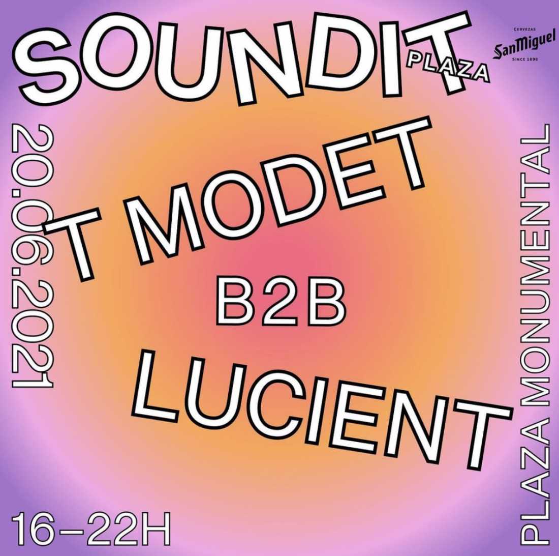 Soundit Plaza vuelve a La Monumental el 20 de junio en horario diurno: de 16:00 a 22:00. Lucient b2b T.Modet, dos de los mejores selectores de la ciudad y habituales del festival, nos regalarán 6 horas de música con un set diseñado especialmente para la ocasión. Ambos ejecutarán un DJ set único y emocionante que nos llevará de viaje por distintos géneros como el balearic, disco, house y hasta psicodelia, que se entremezclarán a medida que avance la tarde.