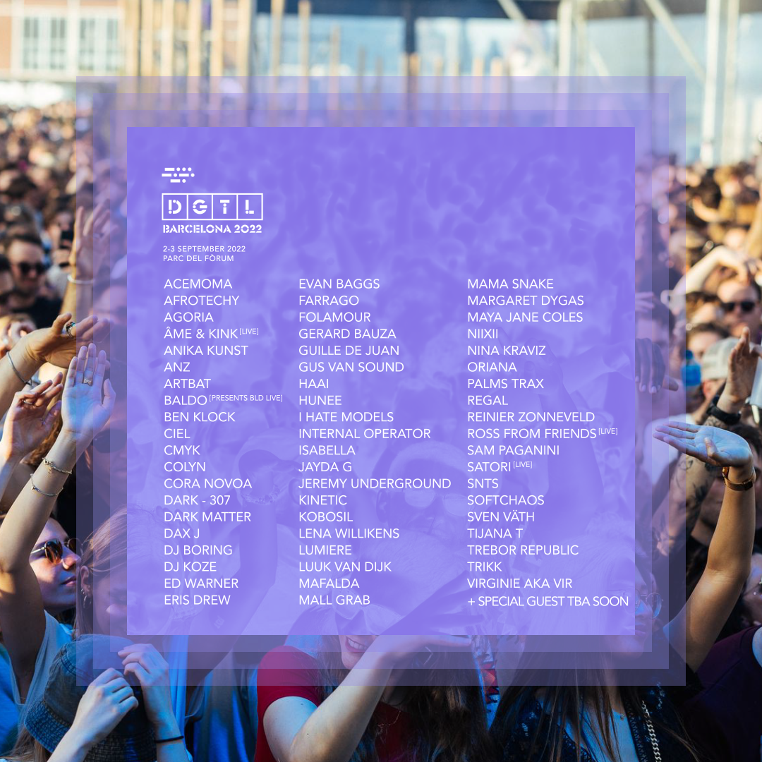 DGTL Barcelona 2022 tendrá lugar el viernes 2 y el sábado 3 de septiembre en el Parc del Fòrum, de 15.00 a 03.00 horas.