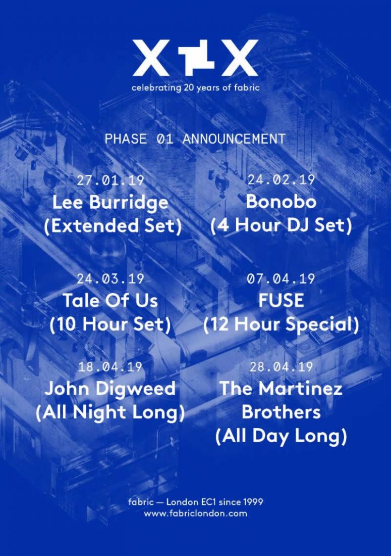 Este es el resto de programación del club Fabric de Londres para celebrar sus veinte año de vida.