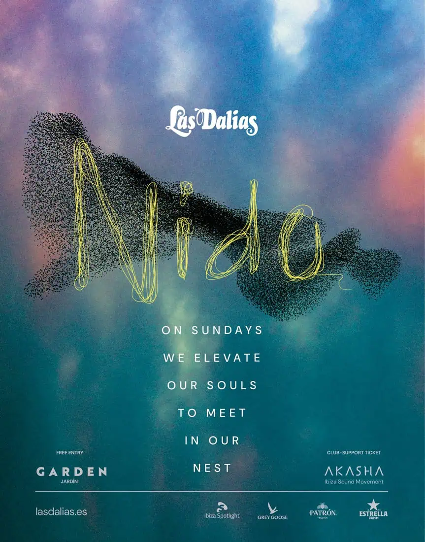 Nido es un viaje musical donde el organic house y la música en vivo nos transportan a una conexión profunda con la tierra y la energía más pura. La cita dominical en Las Dalias Garden arranca con los ritmos cálidos de Cris 44 y Soul Brothers. La fiesta continúa después en Akasha, su club interior, donde Benja y Clint Lee llevarán la noche hasta altas horas con un viaje sonoro profundo e hipnótico.