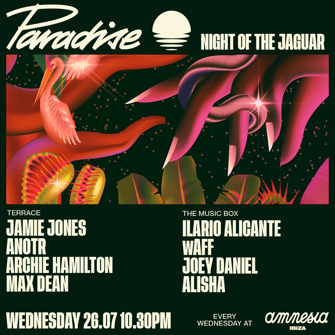 En la Terraza daremos la bienvenida a una jovencísima promesa como Max Dean, DJ/productor de Londres, que crea temas tech house más vanguardistas y oscuros. Archie Hamilton ya es un clásico de Paradise, un artista que ha experimentado un notable ascenso en las filas de la escena underground del house y el techno, convirtiéndose en uno de los artistas más respetados de su género. Trabajando en muchas facetas de la música electrónica, Archie fue uno de los primeros creadores de un nuevo sonido europeo, con su propia visión del minimal house y el techno. ANOTR nos volverán locos gracias a sus ritmos hipnóticos, enérgicos y escurridizos, con influencias de la música disco, el soul, el funk, el jazz y todo lo que pasa por sus manos. Su música es una mezcla entre lo antiguo y lo nuevo, al tiempo que encuentran el punto dulce entre lo que está hecho para los clubes y lo que está hecho para las actuaciones en directo. Y para cerrar la noche el anfitrión preferido de la isla, Jamie Jones nos acompañará hacia el amanecer con ese toque mágico que solo él sabe transmitir, con esa versatilidad y creatividad que hace de cada set algo especial.